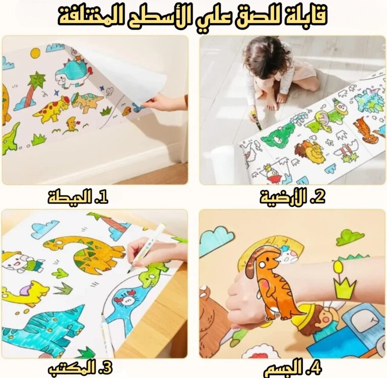 مساحة تلوين كبيرة بتصل طولها لأكتر من 2 متر عشان توفر لطفلك مساحة واسعة للتلوين والمتعة 😍