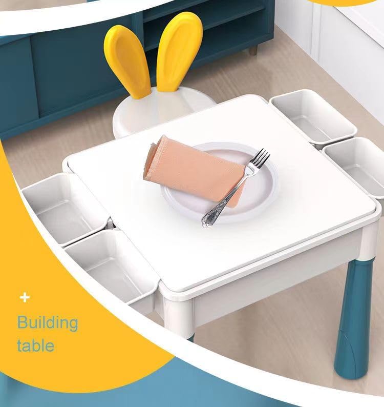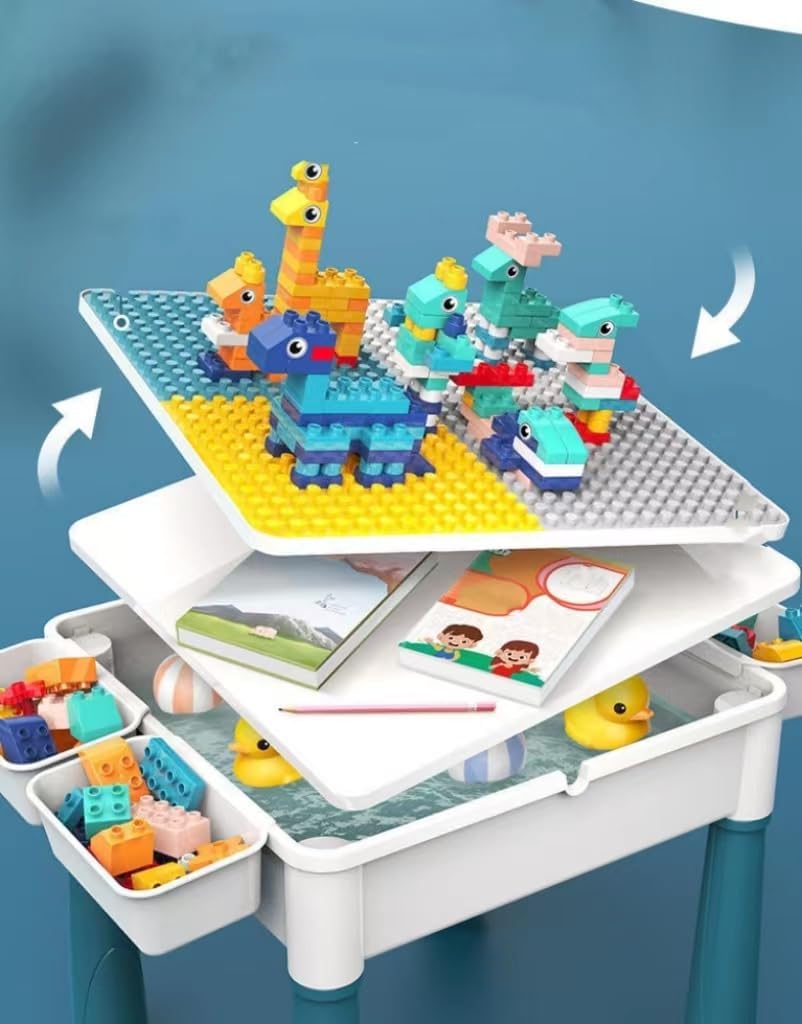 سطح الترابيزة مناسب لتركيب المكعبات وكمان ممكن يتحول لترابيزة عادية للرسم أو الأكل